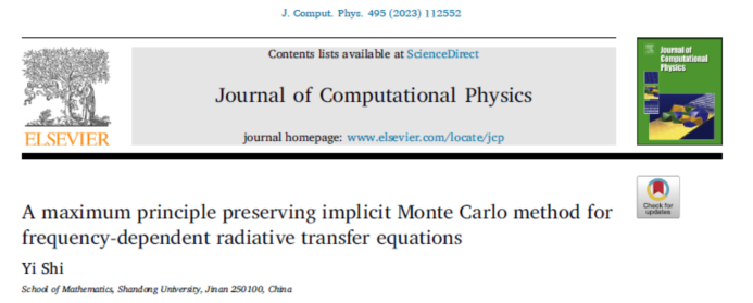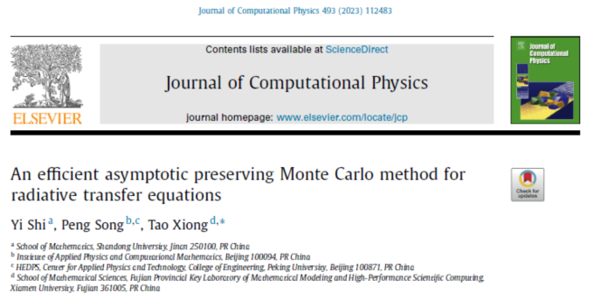近日,beat365在线体育官网登录入口计算数学研究所在辐射输运方程的高效数值算法方面取得重要进展,两篇研究成果以“An efficient asymptotic preserving Monte Carlo method for radiative transfer equations”与“A maximum principle preserving implicit Monte Carlo method for frequency-dependent radiative transfer equations”为题在计算力学顶级期刊Journal of Computational Physics发表。beat365在线体育官网登录入口施意副研究员均为第一作者,北京应用物理与计算数学研究所宋鹏研究员与厦门大学熊涛教授为研究合作者。