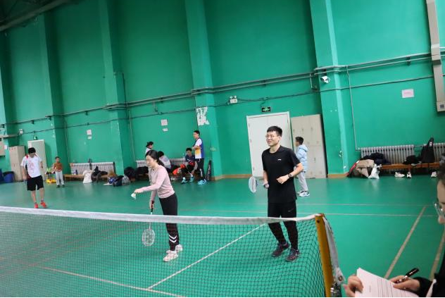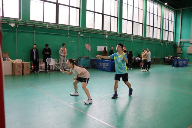 本次比赛设教职工混双,师生男双和混双。上午8:30,小组循环赛拉开帷幕。参赛队员团结协作,全力以赴,火热的气氛点燃整个体育馆。参赛队员在“击发扣杀”间释放压力、迸发活力,在团队作战中体会策略与合作,每一次挥拍都充满了力量和速度。经过一上午的激烈对抗后,教职工组八队出线,师生组四队出线。