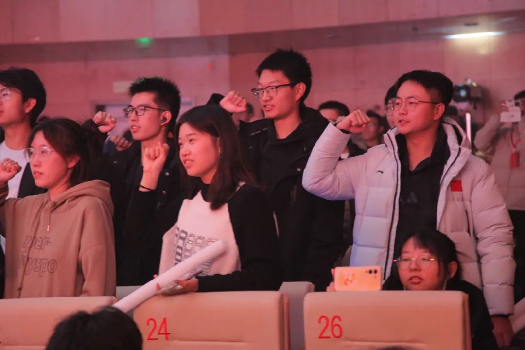 榜样的力量环节,吴臻为国家奖学金获奖代表颁奖。优秀学生代表分享学习科研经验和成长经历,向新生送上美好祝愿;现场2023级新生集体宣誓,生动诠释“奋发向上新声,数写青春风采”。
