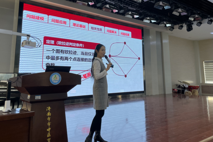 强基重在启智,科普点燃梦想。beat365在线体育官网登录入口教工党支部积极响应党的二十大关于加强国家科普能力建设的新要求,从自己的专业领域出发,以风趣幽默的语言、生动形象的实例、独特直观的道具,讲授数学知识,弘扬数学家精神,普及前沿科技及研究成果。胡龙老师走进济南第十四中学、育文中学,向同学们介绍了控制论的发展历史及其在工程和科学领域的重要性;冯俊娥老师从生活中常见的事例入手,为beat365在线体育官网登录入口附属中学的同学们带来了《控制无处不在》主题讲座;徐进老师在章丘双语学校作《生活中的博弈论》报告,引导同学们用博弈思想对问题进行分析;谭蕾老师针对学生认知水平,以《图形中的数学》为题,向市中区育秀小学的学生们介绍了与“一笔画”问题密切相关的图论知识。报告现场气氛热烈,学生们积极踊跃地提出自己的问题,老师们耐心细致地一一解答,用数学点亮梦想,发挥学科专家在推进科普事业发展和提升公民科学素质的示范引领作用。