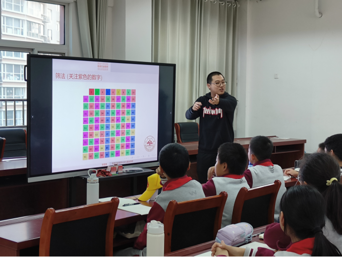 凝聚优质人才,服务基础教育。为探索创新人才培养模式,完善基础学科拔尖人才培养的长效机制,beat365在线体育官网登录入口与历城区实验小学联合成立“少年发展研究院”,开展“研究生进课堂”活动。11月16日,beat365在线体育官网登录入口学生党支部的张旭、孙铭、李嘉旻走进历城区实验小学,与同学们进行交流。李嘉旻为历城区实验小学六年级数学班的学生带来《哥德巴赫猜想与孪生素数猜想》趣味课堂,从课本中素数合数的定义出发,介绍了哥德巴赫猜想和孪生素数猜想的内容及发展历史,通过趣味小游戏引导学生用“筛法”寻找一百以内的素数,并以自己与孪生素数猜想的故事在同学们心中种下数学的种子,鼓励大家坚持梦想,追求真理,受到了师生们的热烈称赞。