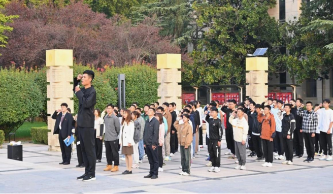 本科2023级1班团支部与本科2023级强基班团支部开展“朝阳下高扬国旗团旗专项活动”。在升旗仪式上,伴随清晨第一缕阳光,两个团支部一齐观看国旗护卫队出旗、升旗,齐唱国歌,倾听张艳强副书记教导和穆甜甜学姐科研奋斗经历,重温入团誓词。