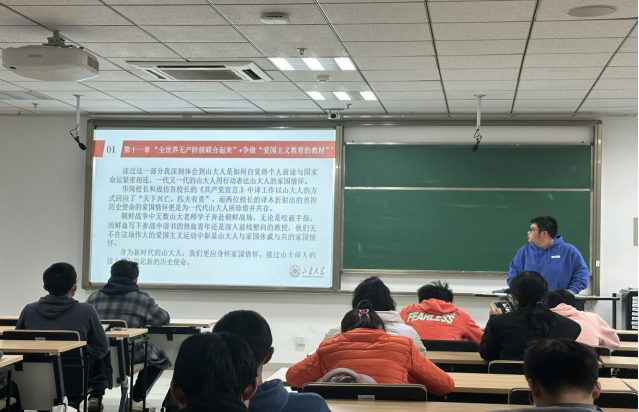 本科2023级2班团支部开展主题为“树立先进学习典型,引导团员交流互助”的团日活动。团支书将支部分为学习小组,分组学习《走进山大》一书,由组长带领组员开展心得分享讨论活动,鼓励团员走上台讲述独属于自己的感悟,分享自己的心得体会。