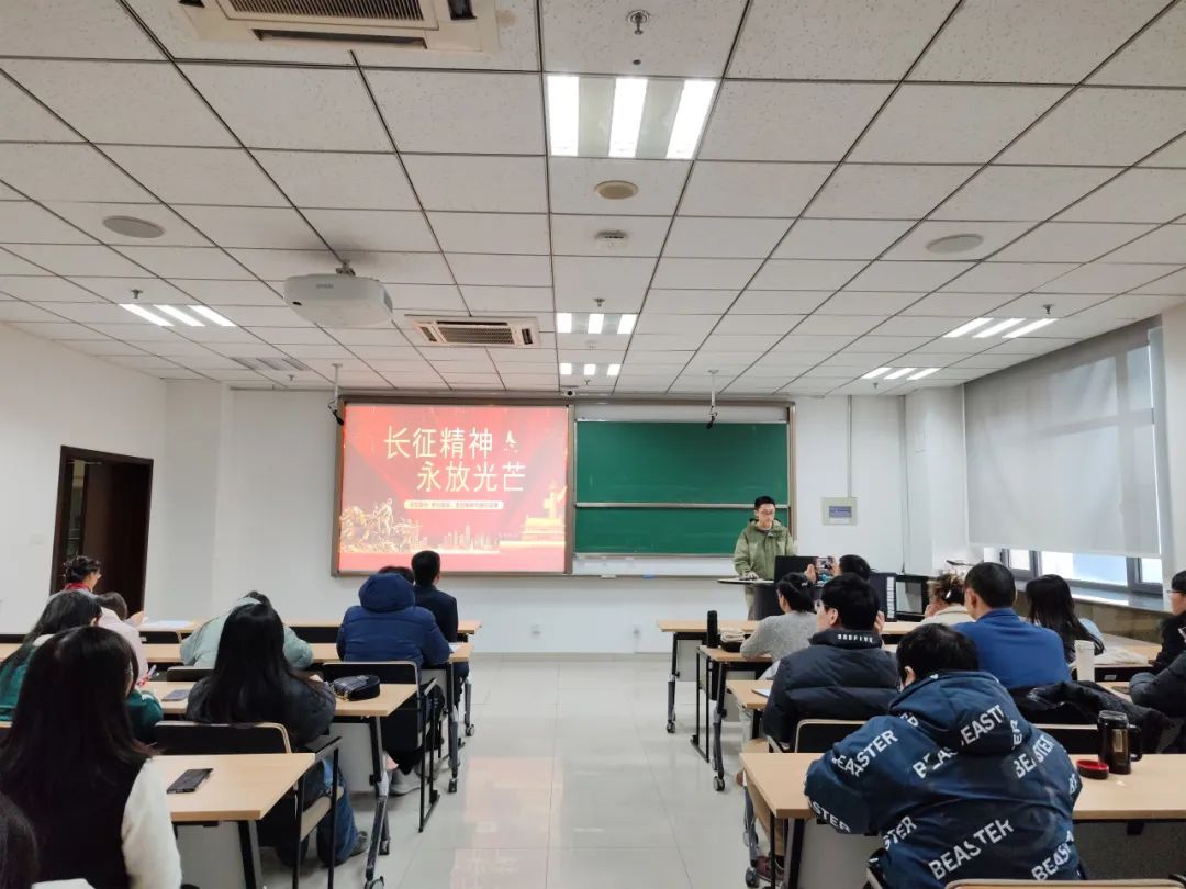 本年度“先锋讲坛”主讲人王子昱、谢烨麟、赵子畅分别讲述了长征精神、抗美援朝精神、脱贫攻坚精神,通过回溯这些宝贵精神所产生的历史背景、形成过程和时代意义,激励党员弘扬光荣革命传统、赓续红色血脉,为实现中华民族伟大复兴凝聚起奋勇前进的强大精神力量。党员教育培训活动还举行了党员宣誓仪式,本科生宗传艺代表预备党员发言,预备党员进行入党宣誓、新党员重温入党誓词,表达了为党的事业奋斗终身的决心。