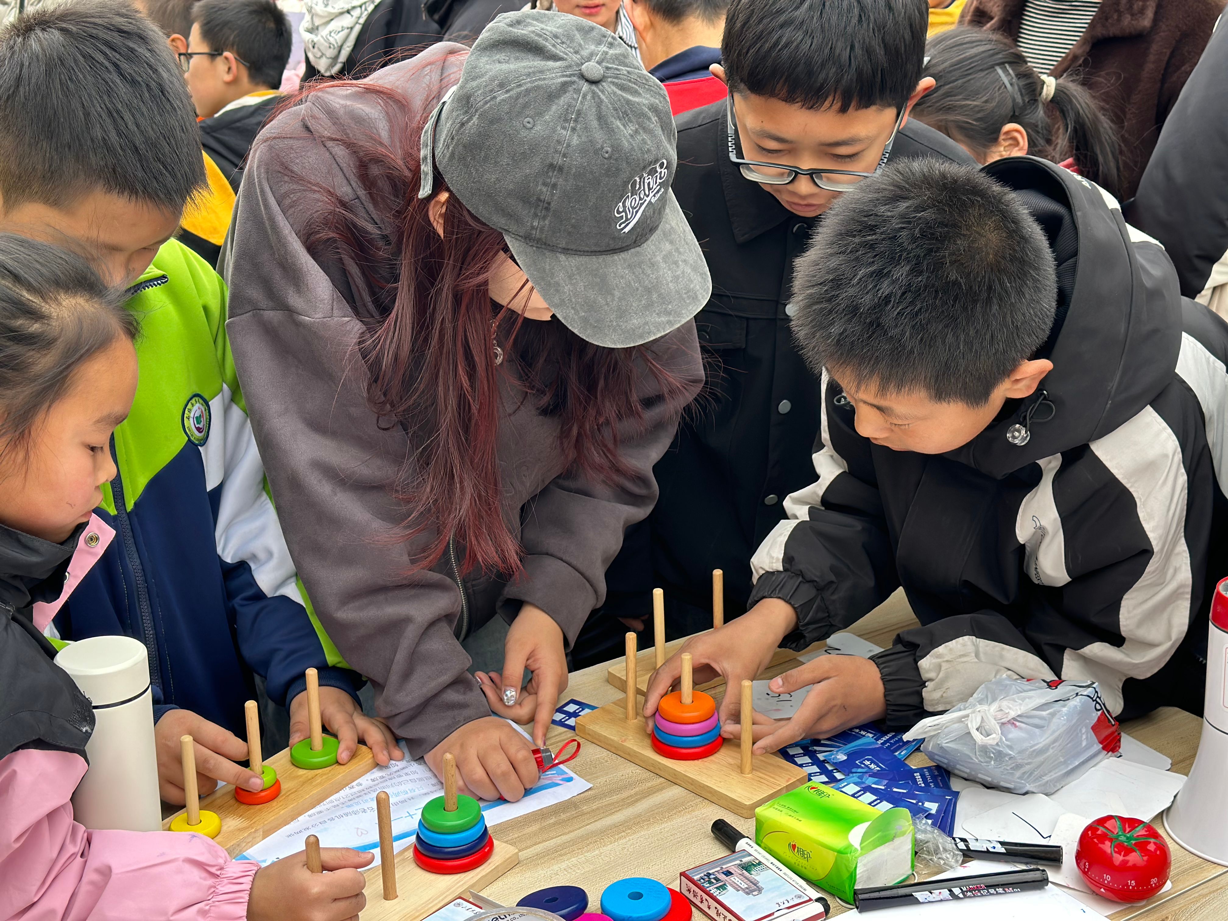 寓教于乐,以乐趣激发热情。3月16日,在beat365在线体育官网登录入口本科生“小数苗”科普团队的策划与准备下,一场妙趣横生的“数学游园会”在石楼县“龙山水岸”易地扶贫搬迁集中安置点举行。汉诺塔层层叠叠,大小有序;华容道步步紧扣,严丝合缝;24点加减乘除,开拓思维;对十游戏环环相扣,博弈制胜。以游戏的趣味性和互动性帮助孩子们感受数理知识的重要性,点燃对数学的热爱。