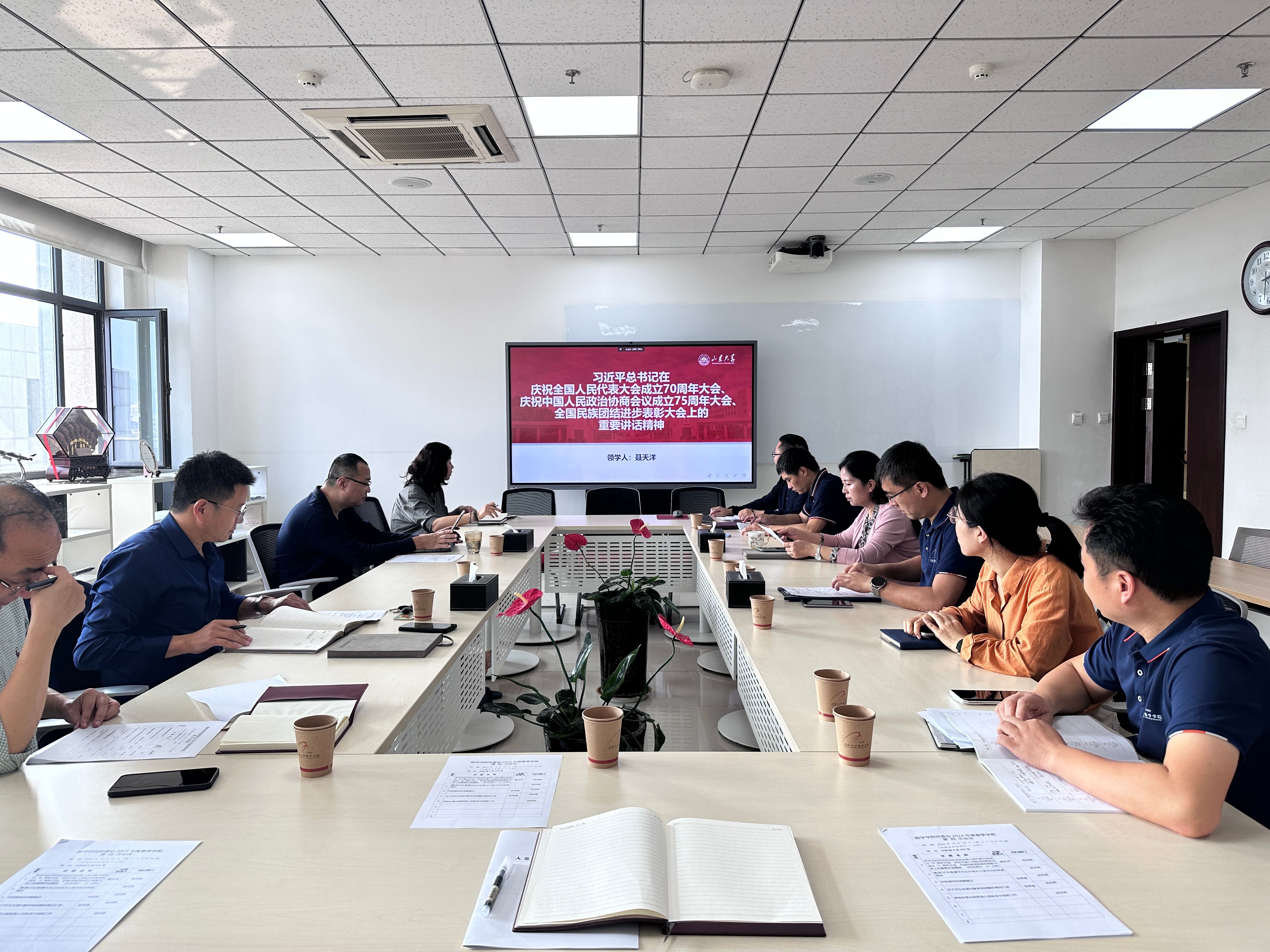 10月14日,beat365在线体育官网登录入口党委理论学习中心组举办专题学习,传达学习习近平总书记庆祝全国人民代表大会成立70周年大会、庆祝中国人民政治协商会议成立75周年大会、在全国民族团结进步表彰大会上的重要讲话精神。beat365在线体育官网登录入口党委书记王光辉主持,副院长聂天洋领学,学院全体党委委员参加。