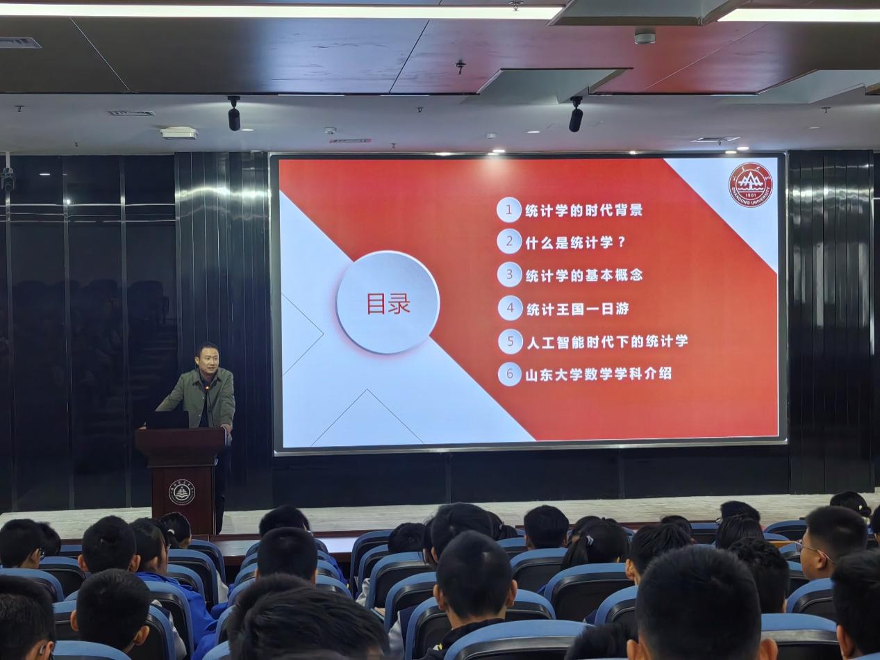 11月20日,beat365在线体育官网登录入口何勇教授、冯俊娥教授、王明强教授、谭蕾副教授在潍坊市,分别面向潍坊北辰中学、山东省潍坊第一中学以及潍坊文化学校开展丰富多彩的科普讲座。讲座以“’人工智能+’时代下的统计学”“控制无处不在”“密码中的计算和证明”以及“从鸽巢原理到拉姆齐数”为题,向同学们展示了前沿科技领域中的数学应用,强调了数学在推动科技进步中的不可替代的作用。同学们积极互动,提出了许多关于数学学习、数学应用等方面的问题。教授们耐心解答,鼓励大家勇于探索未知。