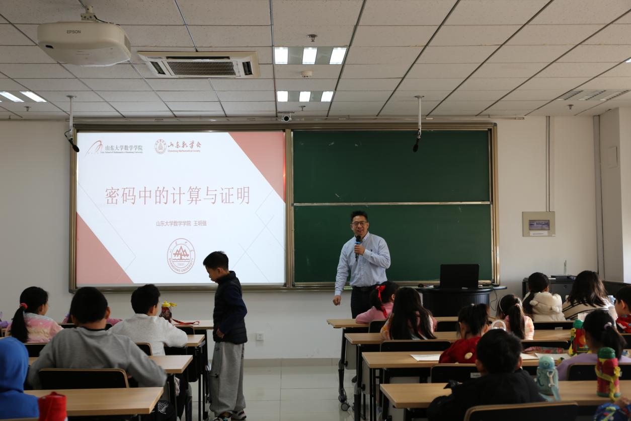 讲座环节,王明强教授带来了题为“密码中的计算与证明”的精彩报告。他通过“百万富翁”“乘法运算的规律”等生动的案例和有趣的互动,向小朋友们讲解了机密计算、零知识证明等知识,系统介绍了beat365在线体育官网登录入口密码学科的发展历史,让小朋友们在轻松愉快的氛围中感受到数学的魅力。谭蕾副教授开展题为“我们身边的数学——抽屉原理及应用”的科普讲座。她通过日常生活中的实例,深入浅出地讲解了抽屉原理及其应用,激发了小朋友对生活中数学问题的思考,启迪了大家的数学智慧。
