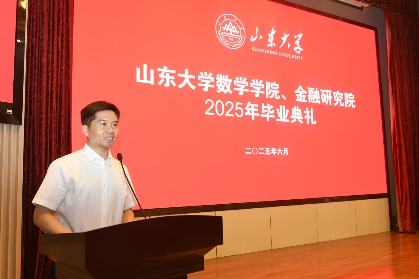 拥抱真理、共铸辉煌,为中国式现代化建设挺膺担当。吴臻为毕业生上了“最后一课”。他回顾了同学们在大学生涯中与山大数学共同书写的篇章,他表示,学校和学院把“培养最优秀本科生”和“最具创造力的研究生”作为核心使命,为同学们打造了“学在山大、快乐成长”的育人沃土。广大学子立志科研一线,在学术研究、志愿服务、国际合作中当先锋、做闯将,为数学精神注入了新的时代内涵,持续成长为数学创新和传承数学文明的时代新人,是山大数学的骄傲,更是新时代的栋梁。吴臻向毕业生表达了三点期望。一是勇担使命,胸怀报国之情。希望同学们始终心怀“国之大者”,把论文写在祖国大地上,将才华挥洒在民族复兴的征程中。二是敢闯敢创,永葆求索之心。愿同学们始终保持“敢为人先”的锐气,做时代浪潮的弄潮儿。三是勇毅前行,磨砺坚韧之志。希望同学们锻造百折不挠的品格,在逆境中依然坚持“演算”。