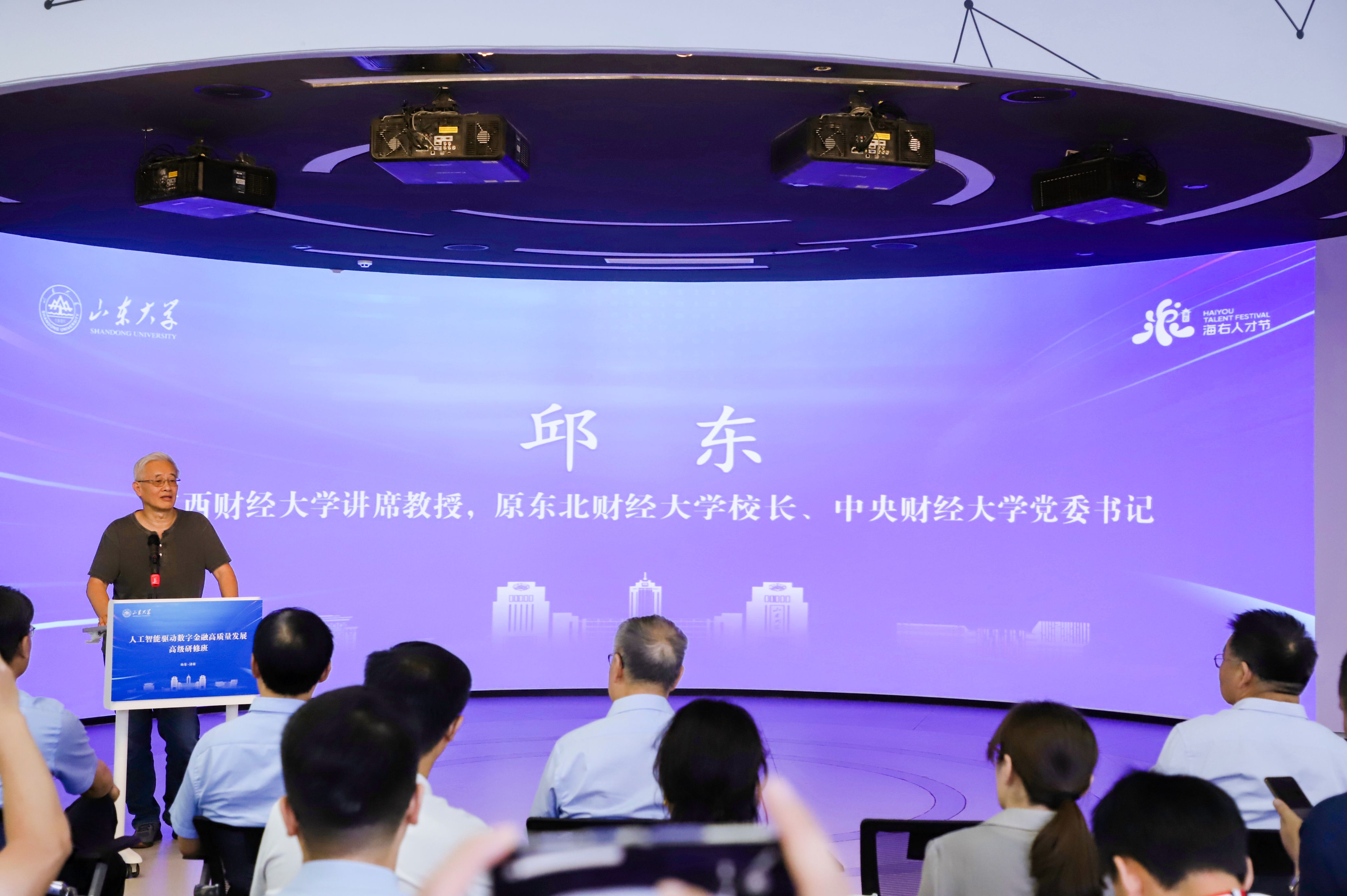 邱东教授在发言中希望各位学员通过高研班的学习,在提升技能的同时,提高思辨能力,不断探索AI与产业发展和生产场景的结合点,运用新兴技术不断赋能新兴产业发展。