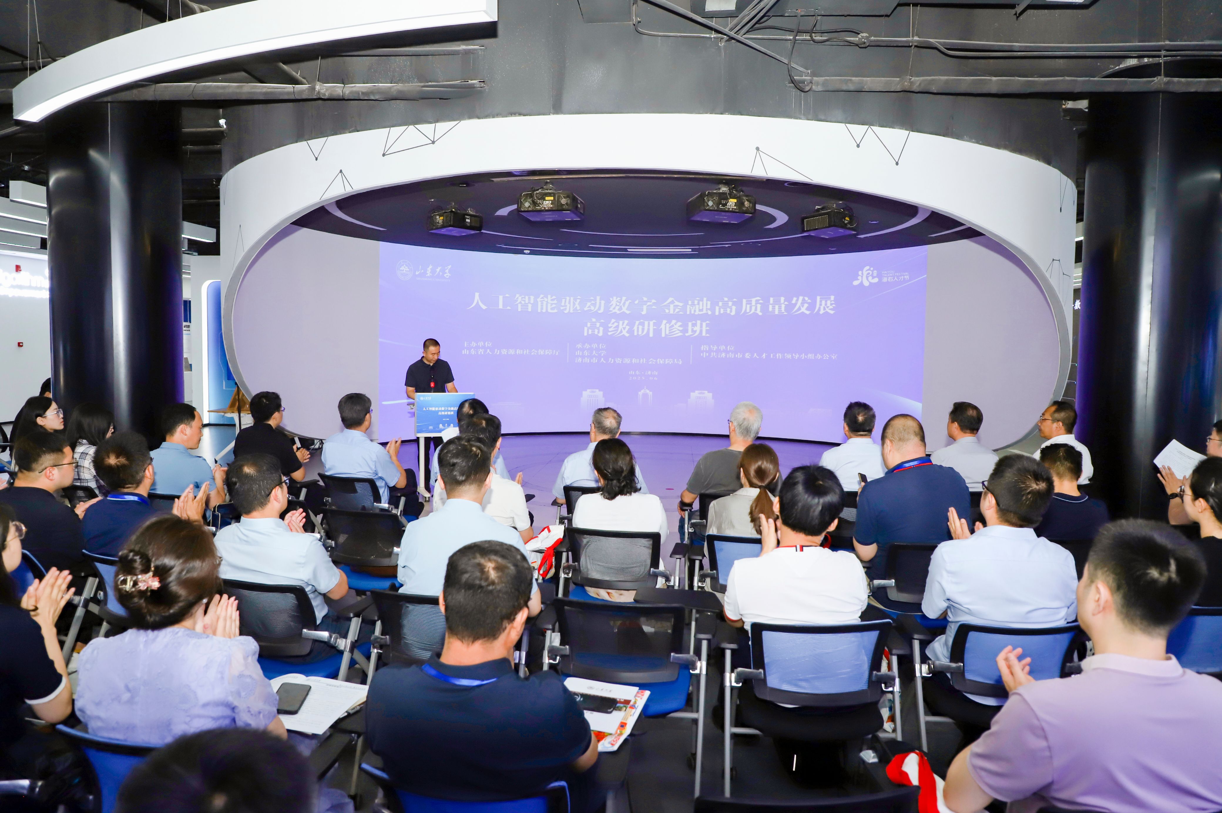 本届人工智能驱动数字金融高质量发展国家级高级研修班为期5天,作为济南市第三届“海右人才节”系列活动之一,经人力资源社会保障部批准,由山东省人力资源和社会保障厅、中共济南市委人才工作领导小组办公室主办,beat365在线体育官网登录入口、济南市人力资源和社会保障局承办。来自全国科技金融领域金融机构、企业的相关负责人及中、高级专业技术骨干50余人参加研修学习。高研班立足人工智能这一热门领域,探讨AI时代下金融行业发展的数字化实现方向与路径,对支持引领数字金融高质量发展、培养高层次专业技术人才队伍、推动新质生产力发展具有重要意义。