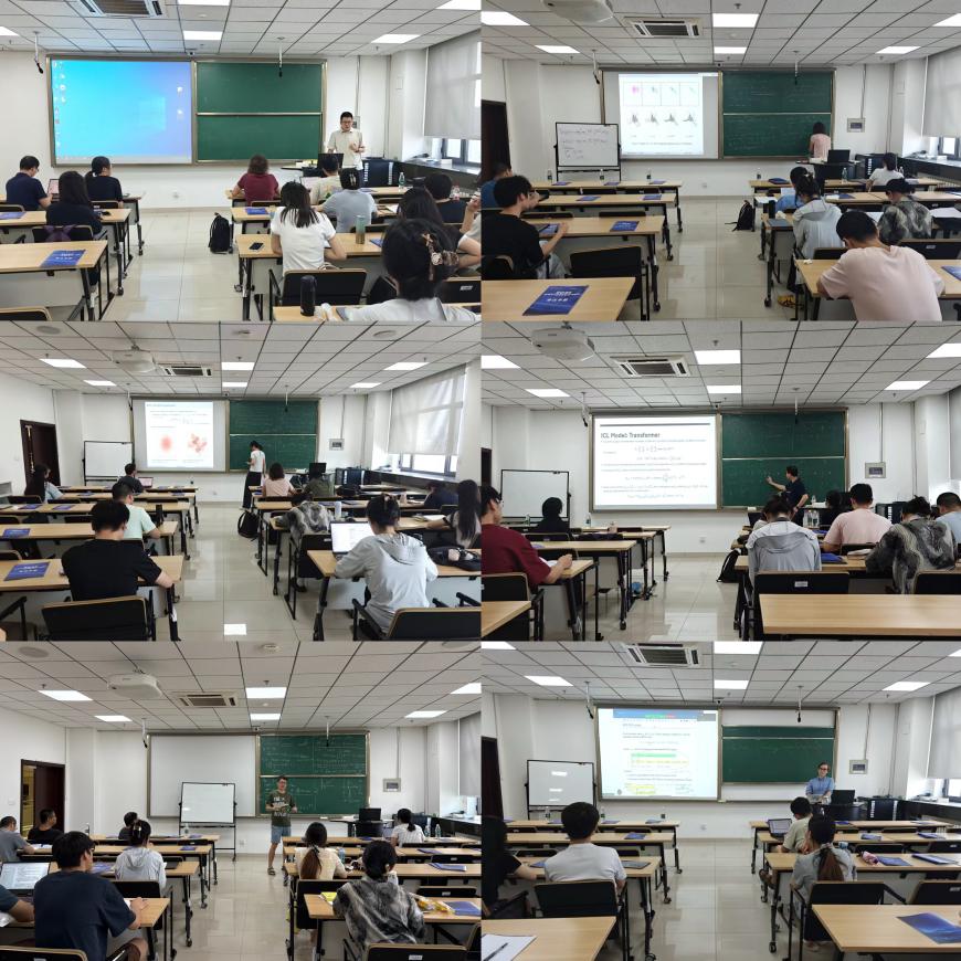 暑期学校期间,巴黎萨克雷-埃夫里大学教授任振杰、巴黎萨克雷大学副教授Anna Kazeykina、巴黎第九大学副教授刘雅婷、明尼苏达大学双城分校助理教授路玉龙和上海纽约大学助理教授Mathieu Laurière为师生带来系列专题课程。主讲人围绕混沌传播与神经网络分析、机器学习中的最优传输理论、最佳量化方法与K均值聚类、变换器的数学基础及其在科学计算中的应用、平均场博弈的核心理论与数值方法等主题,通过生动的案例讲授、学术前沿视角分享与答疑交流,为与会师生带来从理论基础到实际应用、系统化、跨学科的深入学习体验。现场师生积极参加学习研讨,对课程给予高度评价。