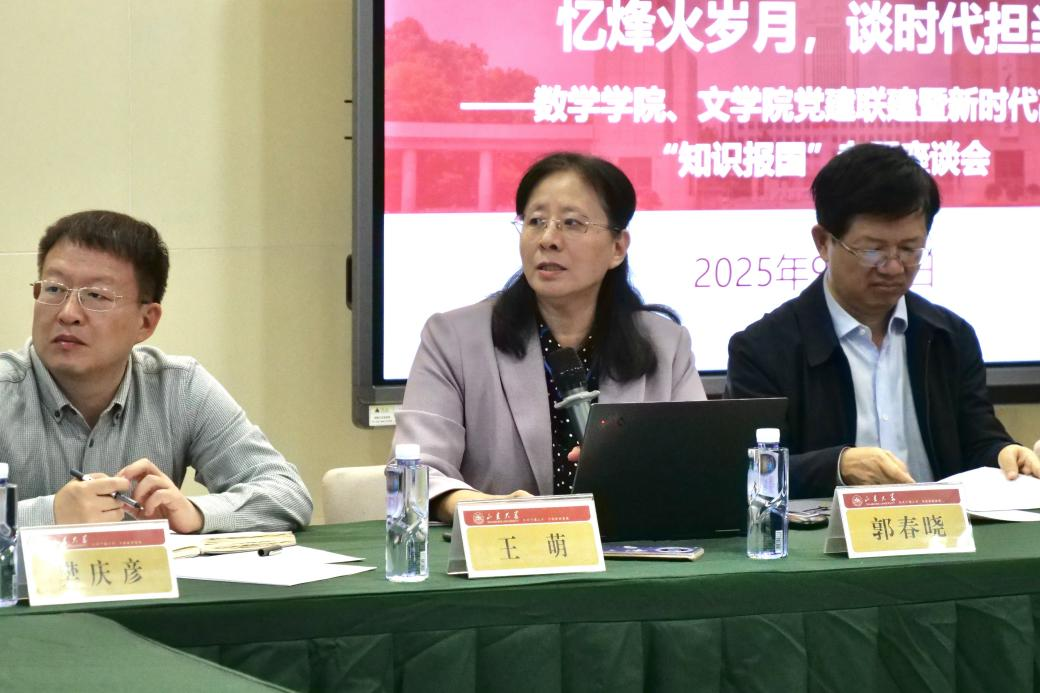 随后,王光辉概述了黄际遇先生教育救国、赓续文脉的事迹,并介绍了beat365在线体育官网登录入口学科建设与发展的历史脉络。他表示,beat365在线体育官网登录入口始终坚持党建引领,弘扬先贤精神,在立德树人、铸魂育人中强化“五育并举”,矢志奉献国家。黄发有概述了杨振声先生在beat365在线体育官网登录入口期间的办学治校的理念及抗战时期为创建西南联大、赓续中华学脉的事迹,并就中文学科的历史发展建设现状进行了汇报。他表示,学院将继续牢牢把握理想信念教育的主线,厚植家国情怀、弘扬优良学风、引育时代新人。