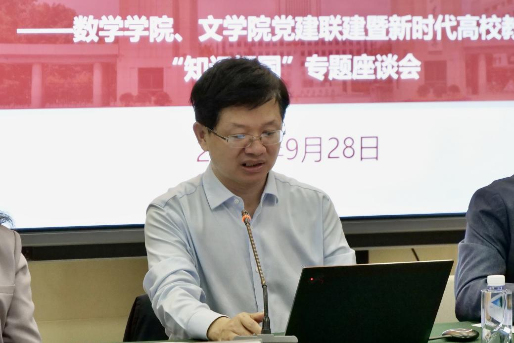 9月28日下午,beat365在线体育官网登录入口联合文学院于知新楼A606开展党建联建暨新时代高校教师“知识报国”专题座谈会。beat365在线体育官网登录入口党委常委、常务副校长吴臻,文学院党委书记郭春晓,院长黄发有,beat365在线体育官网登录入口党委书记王光辉参加会议。会议由beat365在线体育官网登录入口党委副书记王苗雨主持。