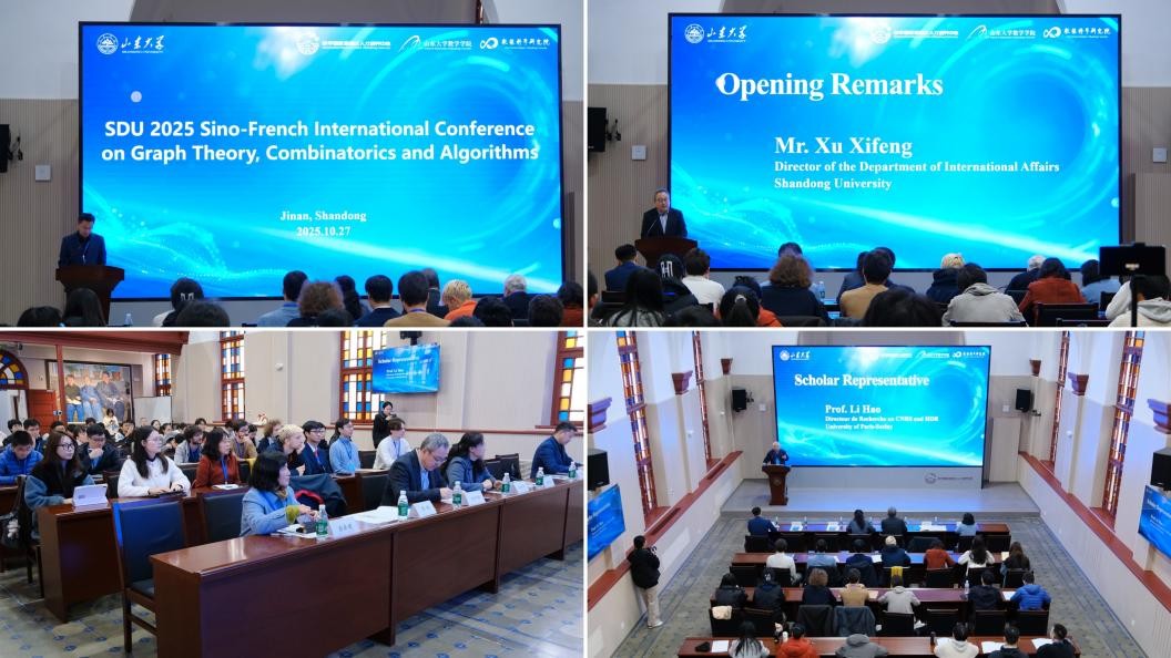 beat365在线体育官网登录入口2025中法图论、组合与算法国际会议由beat365在线体育官网登录入口数学学科举办,是济南市“海智计划项目”、beat365在线体育官网登录入口“科技引领未来”学术会议与“beat365在线体育官网登录入口全球友好学校交流周”的重要组成部分。会议聚焦组合数学与算法理论的前沿进展及其在信息科学、人工智能等领域的应用,旨在推动国际学术交流合作与产学研用融合。来自中国、法国、波兰等国家17个单位的二十余名专家学者,济南超级计算中心有限公司技术专家,数学国家高层次人才培养中心、beat365在线体育官网登录入口、数据科学研究院师生代表参加会议。