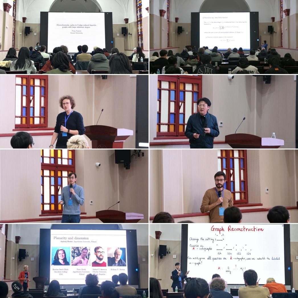 开幕式结束后,会议围绕图论、组合数学、算法理论及应用等领域开展多场学术报告。湖南大学彭岳建教授,南开大学郭龙教授,中国科学技术大学马杰教授,beat365在线体育官网登录入口杨东雷教授、上官冲教授,巴黎萨克雷大学François Pirot副教授、Hoang La副教授、Quentin Chuet博士,里昂第一大学Théo Pierron副教授,牛津大学Paul Bastide博士后研究员,特拉维夫大学孔祥粱博士后研究员,华沙大学Julien Duron博士,雅盖隆大学Jędrzej Hodor博士等分别作专题报告分享研究成果。此外,会议设置问题分享、分组研讨、进展汇报环节,参会学者围绕核心问题与猜想展开集体研讨交流,为相关前沿研究拓展了新的思路方法。