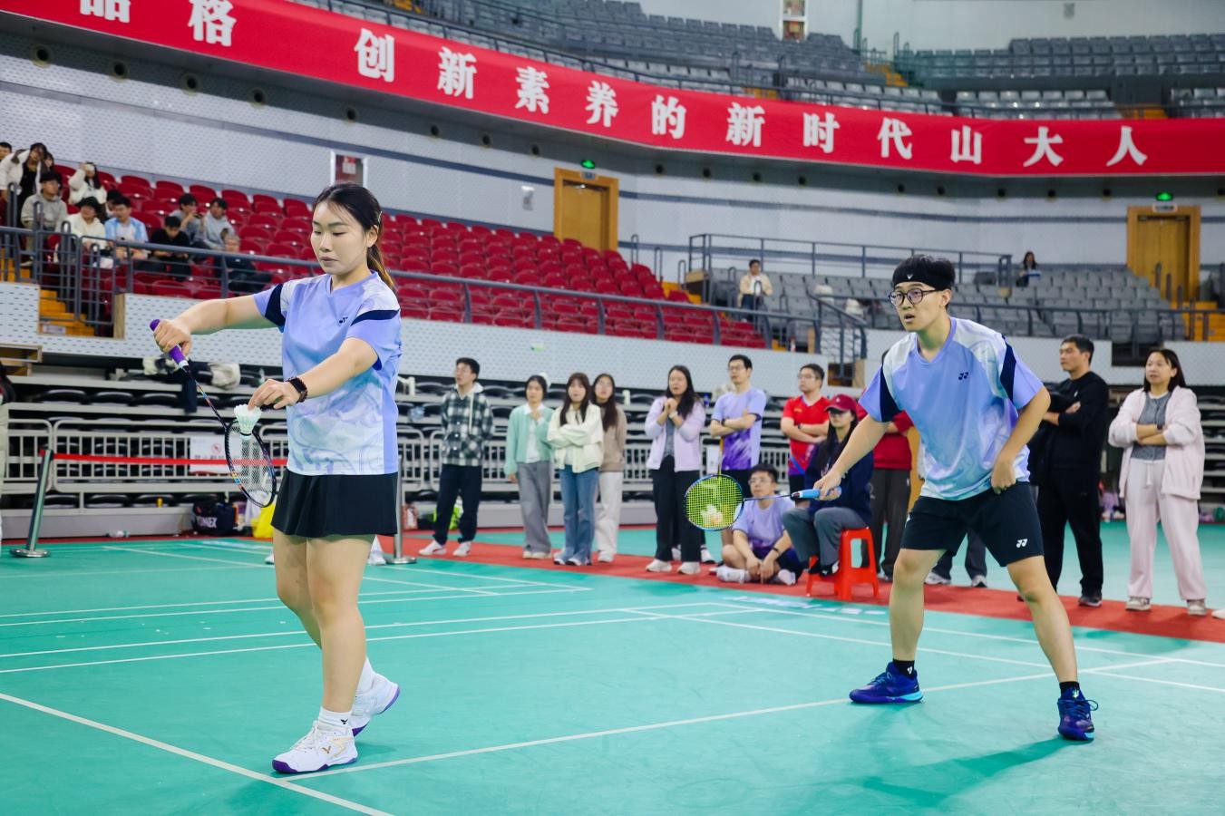 研究生师生羽毛球赛是构建和谐导学关系、推进“五育并举”育人体系的重要实践平台。beat365在线体育官网登录入口党委高度重视研究生体育美育工作,积极创建导学互动场景,引导师生在体育美育中强健体魄,锤炼意志,和谐共进,凝聚力量,打造“学在山大,快乐成长”的数学方案,奋力书写为中国式现代化挺膺担当的数学篇章。