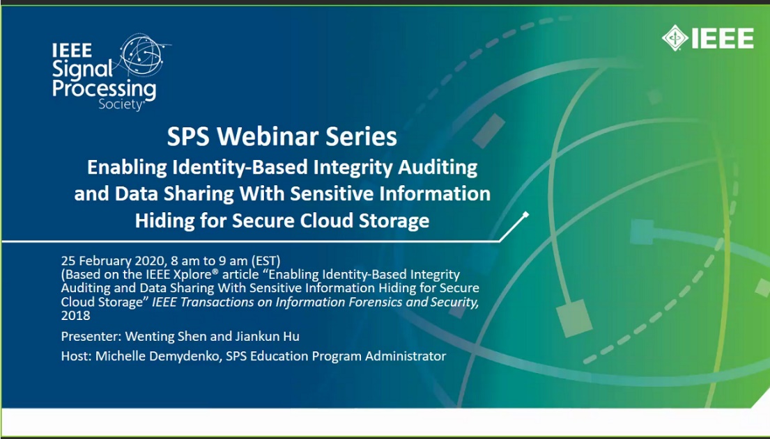Recently, the seminar was successively held on an online platform. Firstly, the host Michelle Demydenko introduced authors of the achievement and thanked and welcomed the participants. Then, Prof. Jiankun Hu from The University of New South Wales introduced the background of this achievement and research status of this field and pointed out the problem of sensitive information leakage in integrity auditing of shared cloud-storage data. At last, Shen Wenting introduced the problems solved by this achievement, solutions, security analysis and experimental evaluation in detail.