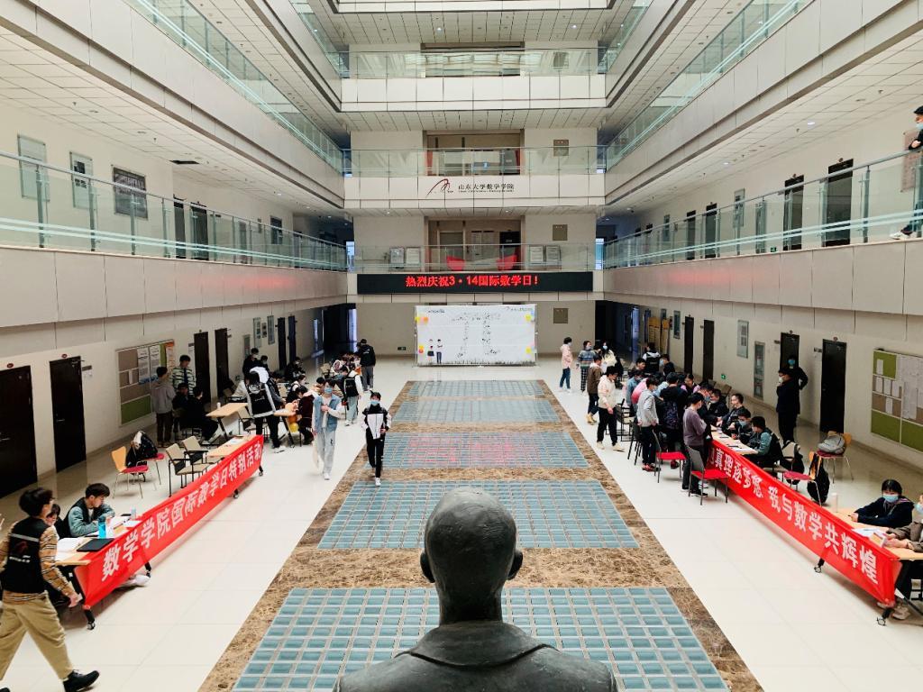 To celebrate the 2021 International Day Mathematics, the School of Mathematics held a special event titled "Pi Day · The 120th anniversary of SDU" on the platform of the 8th floor of Block B, Zhixin Building on March 14.The event included not only interesting mathematical games organized by the Student Union and the Mathematical Modeling Association, but also a classical film played by Mr. Hua Luogeng Study and Research Association, attracting hundreds of SDUers. To commemorate the ancient Chinese mathematician Zu Chongzhi, the International Mathematical Union has designated March 14 each year as International Day of Mathematics, derived from the rounded value of π calculated by the ancient Chinese mathematician Zu Chongzhi.UNESCO's 40th General Conference decided March 14 as the International Day of Mathematics on November 26, 2019.